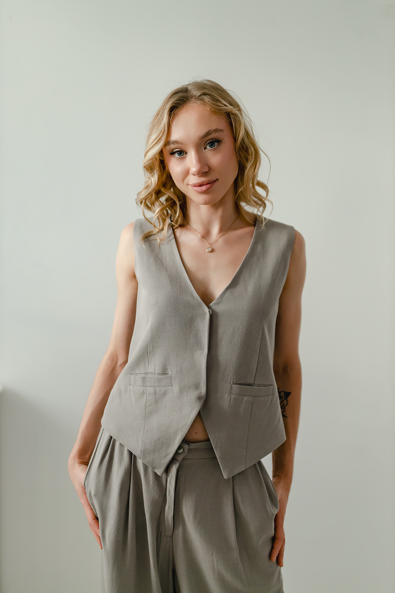 Kamizelkę postanowiłyśmy uszyć w dwóch wariantach – wariant z głębokim i płytkim dekoltem. Obie śliczne jednak obie odpowiadają różnym preferencjom. Tak, podszewka jest z wiskozy, klasycznie.